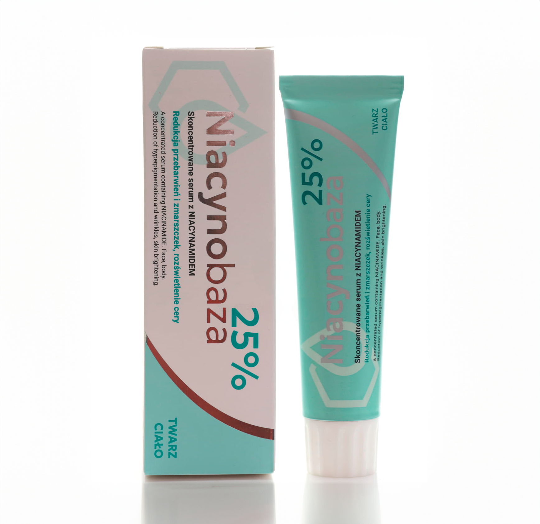 Niacynobaza Sérum Niacinamide 25% est un sérum hautement concentré pour le visage et le corps, conçu pour unifier le teint, réduire l’apparence des pores et réguler l’excès de sébum. Sa formule enrichie en 25% de niacinamide aide à diminuer visiblement l’hyperpigmentation, améliore la texture de la peau et révèle un éclat naturel.