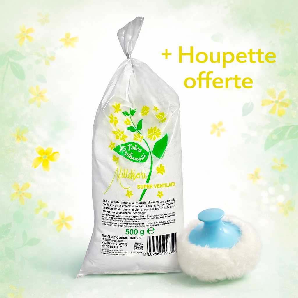 Le Talco Parfumé Millefiori 500g est une poudre corporelle délicatement parfumée, idéale pour un usage quotidien après la douche ou le bain. Sa texture fine et légère aide à absorber l’humidité, à réduire les frottements et à laisser la peau douce, sèche et agréablement fraîche tout au long de la journée.